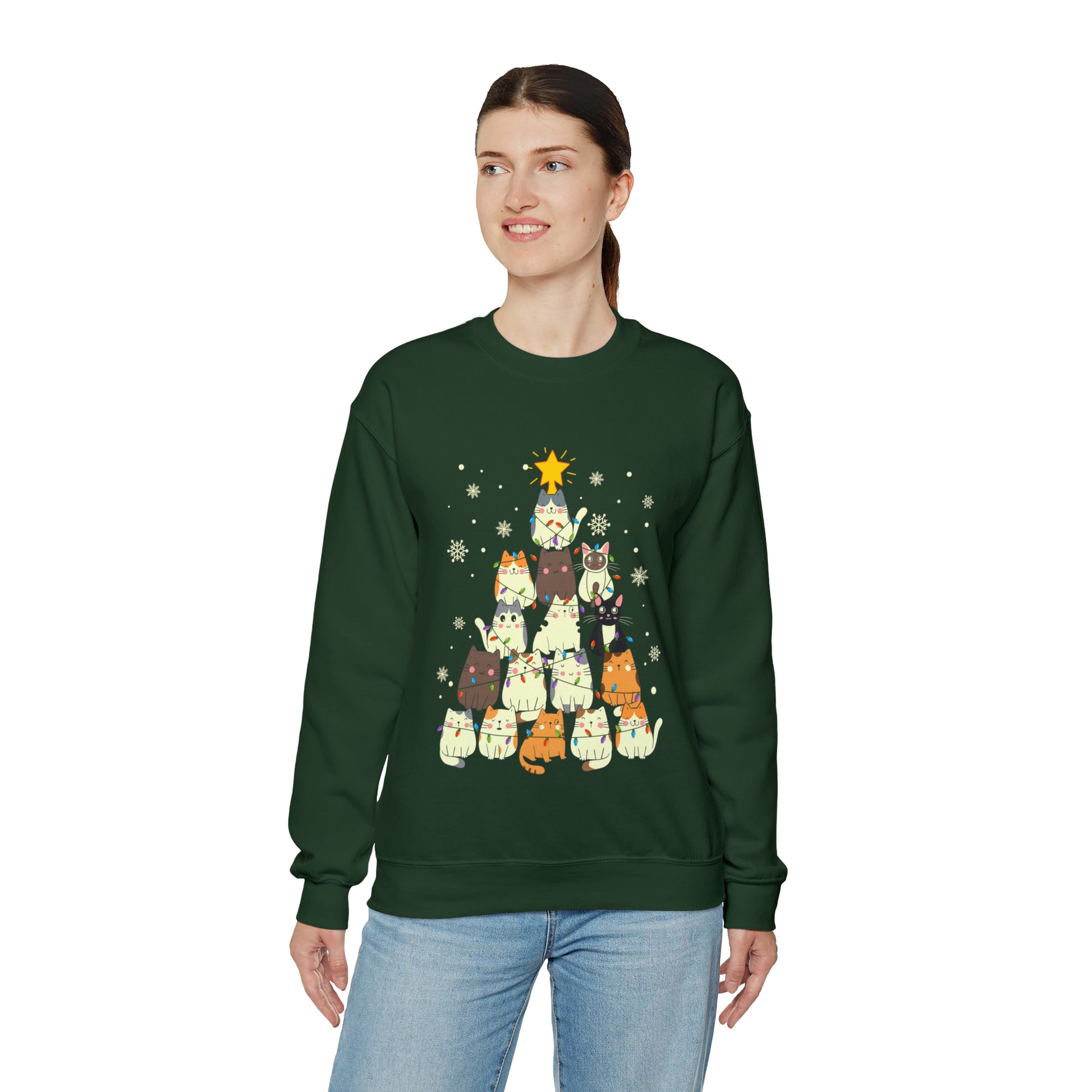Cat Christmas sweater Kitty Christmas tree sweatshirt Family Cat lover gift for gift for him Merry Bright Christmas sweatshirt Christmas