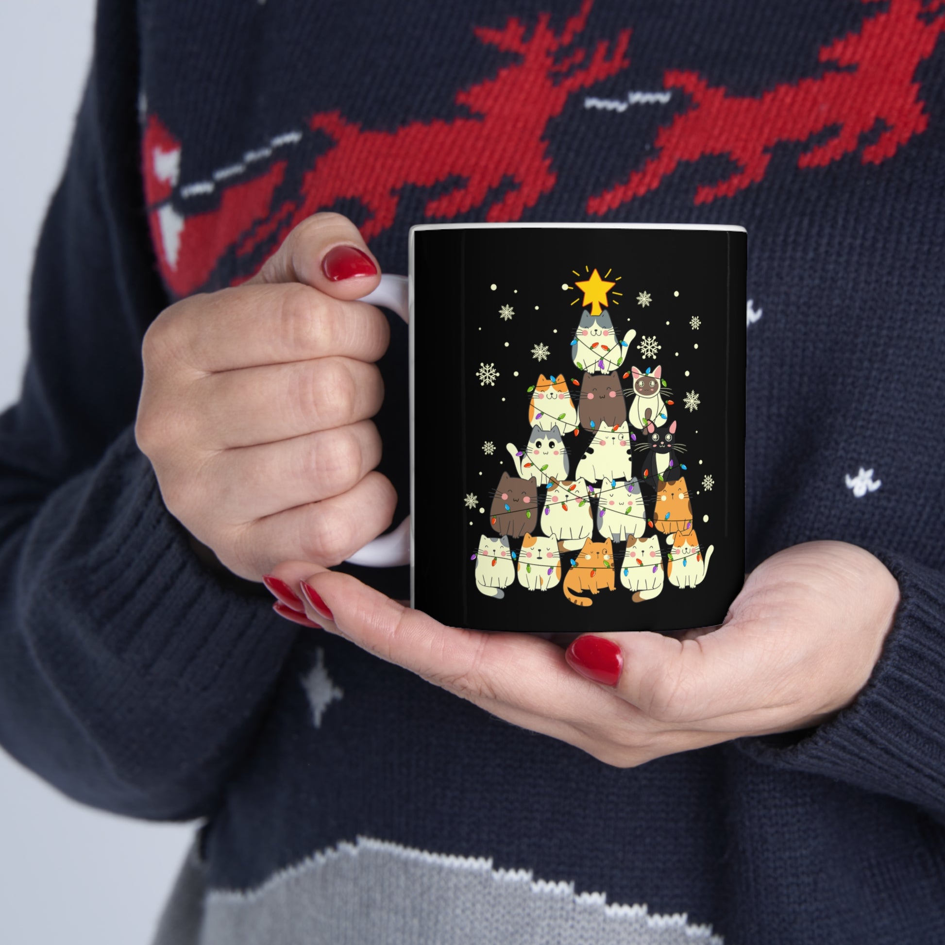 Christmas Cat tree, Cat lover gift coffee lover gift tea lover gift gift for her gift for him Ceramic Mug 11oz Best friend Christmas gift