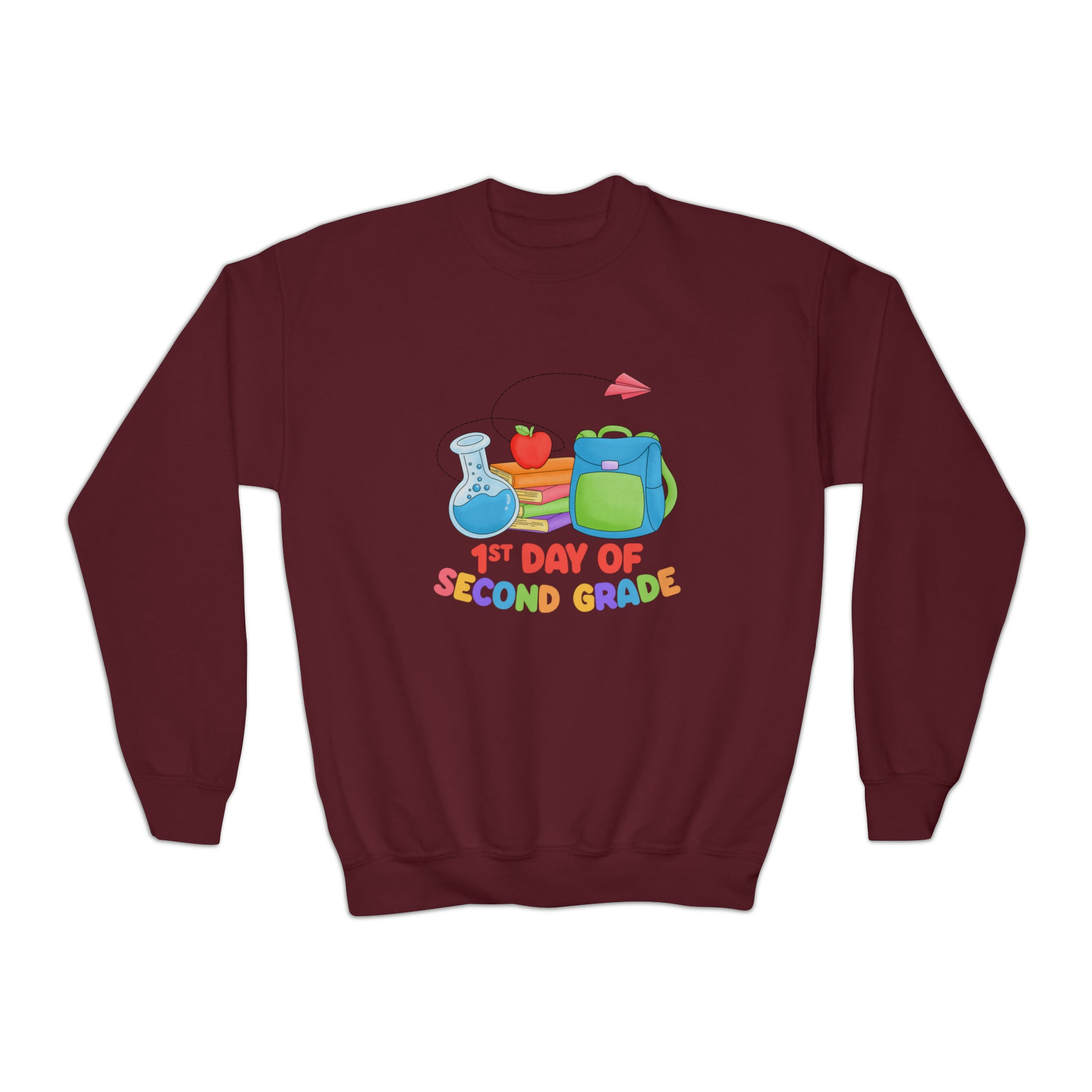 First day of school sweater second grade shirt elementary school style Youth Crewneck Sweatshirt