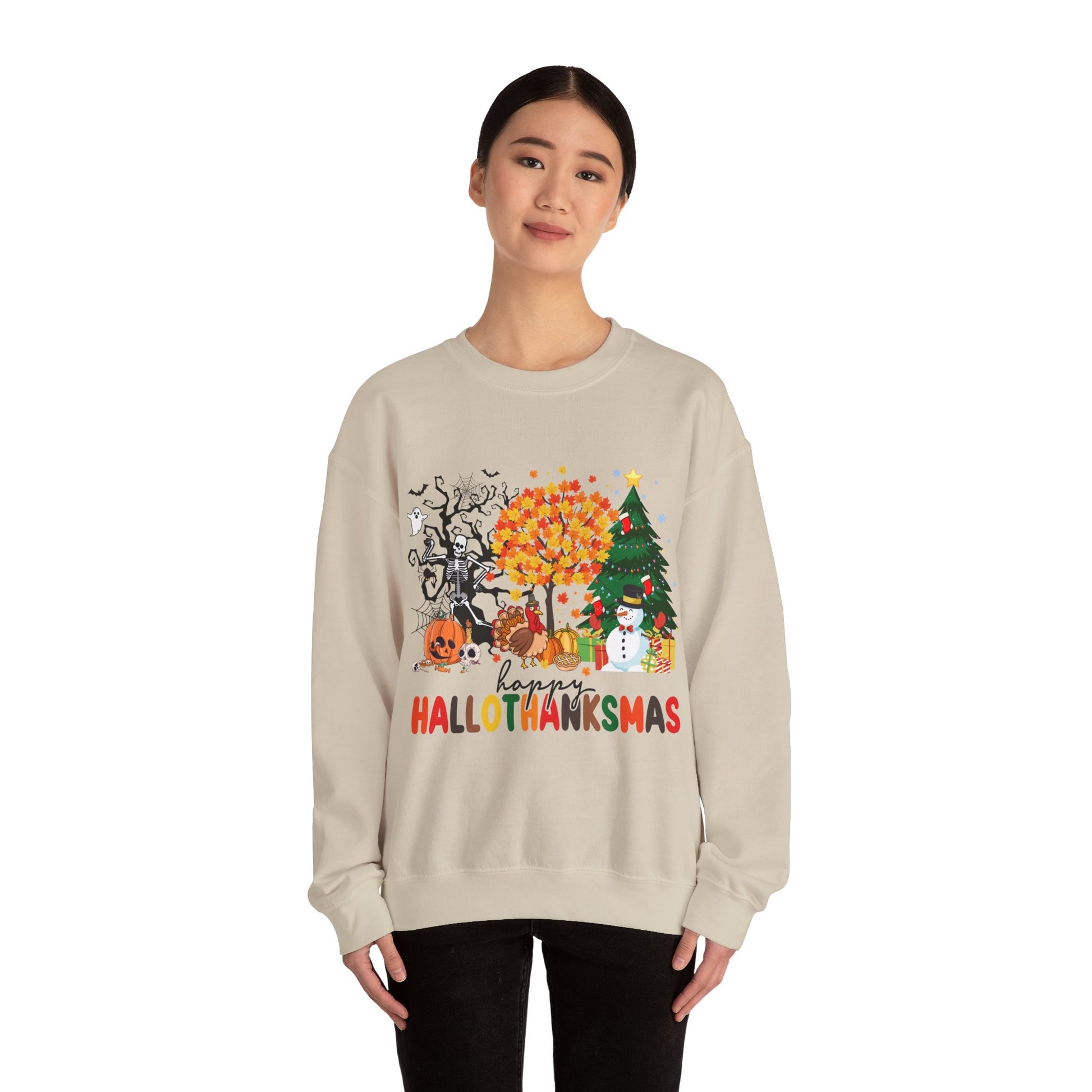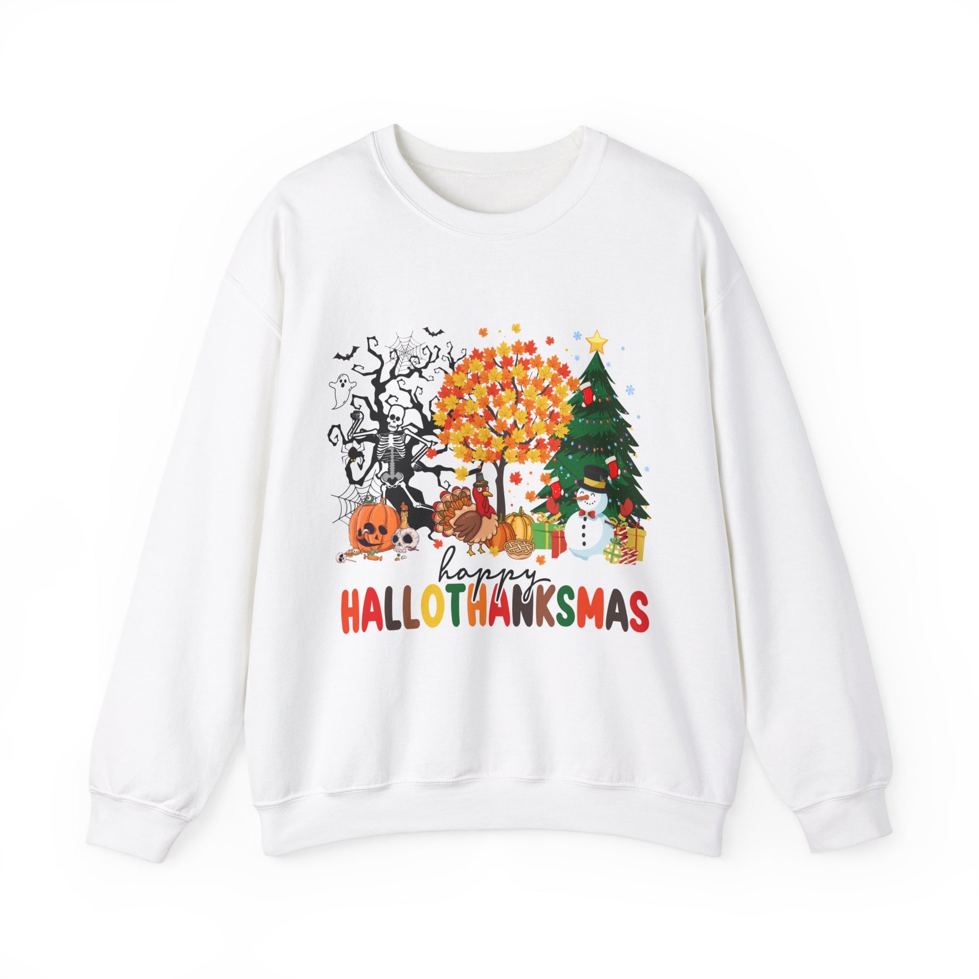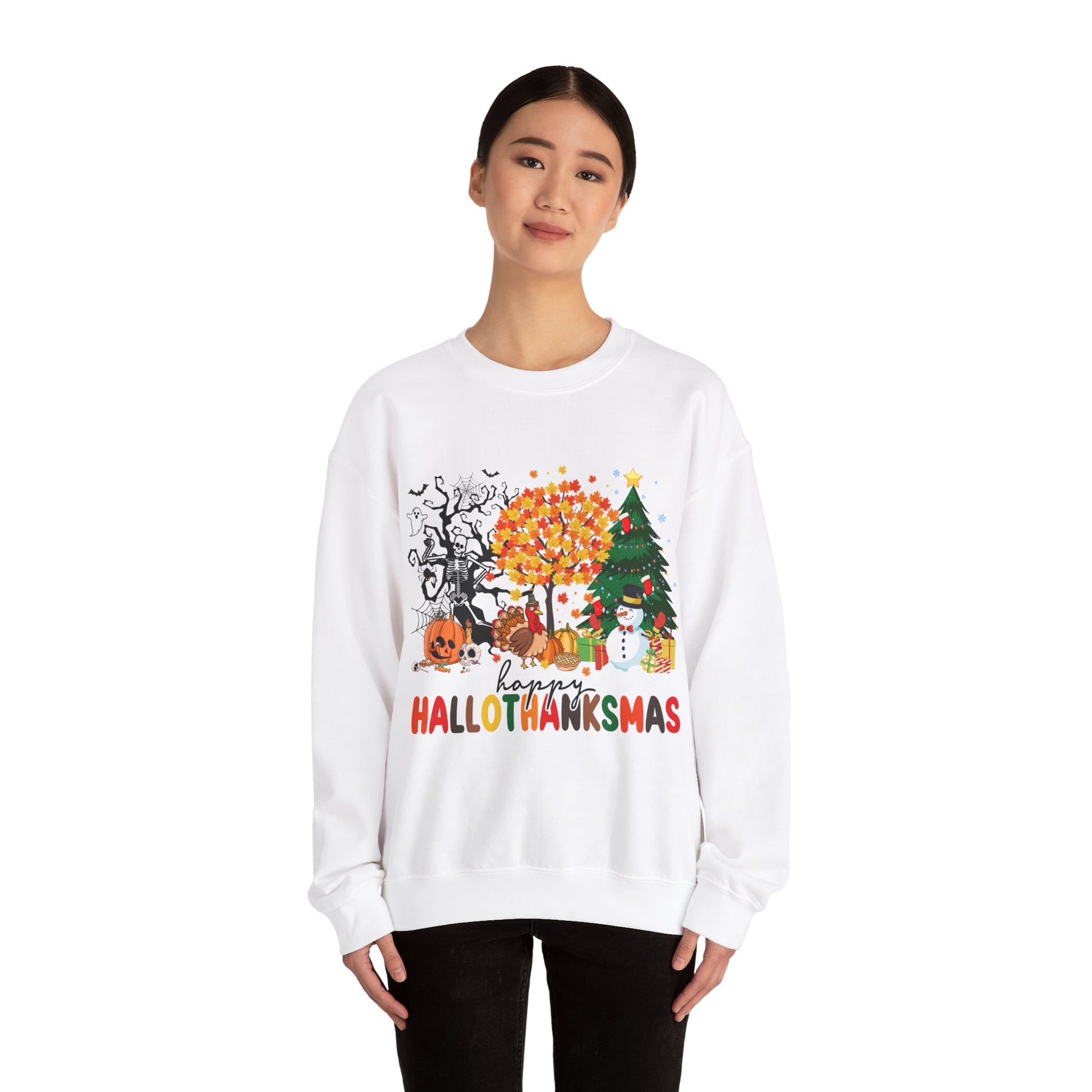 Happy Hallothanksmas Sweatshirt Halloween Gift For Women Christmas Sweatshirt Cute Halloween Sweater Colorful Halloween Sweatshirt christmas