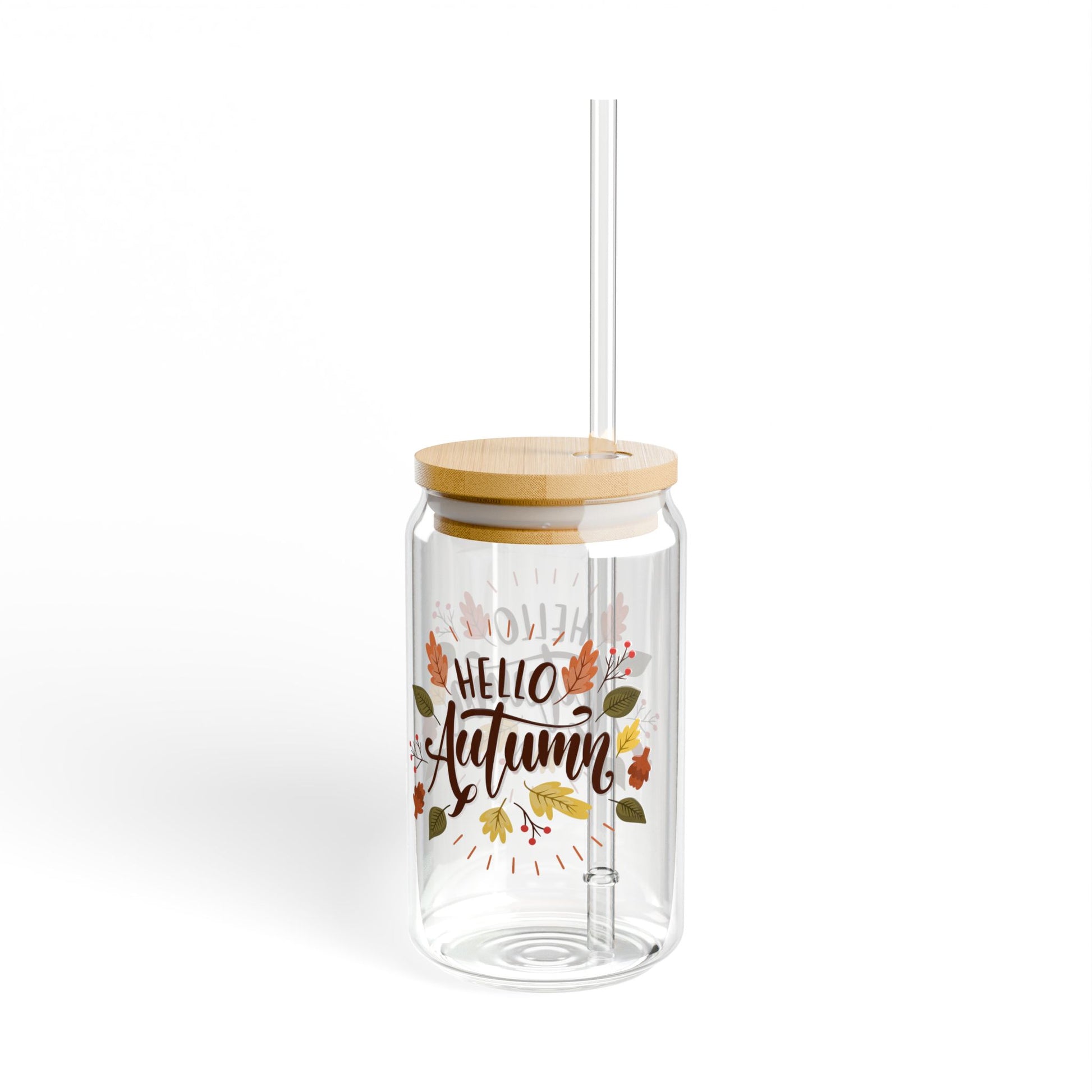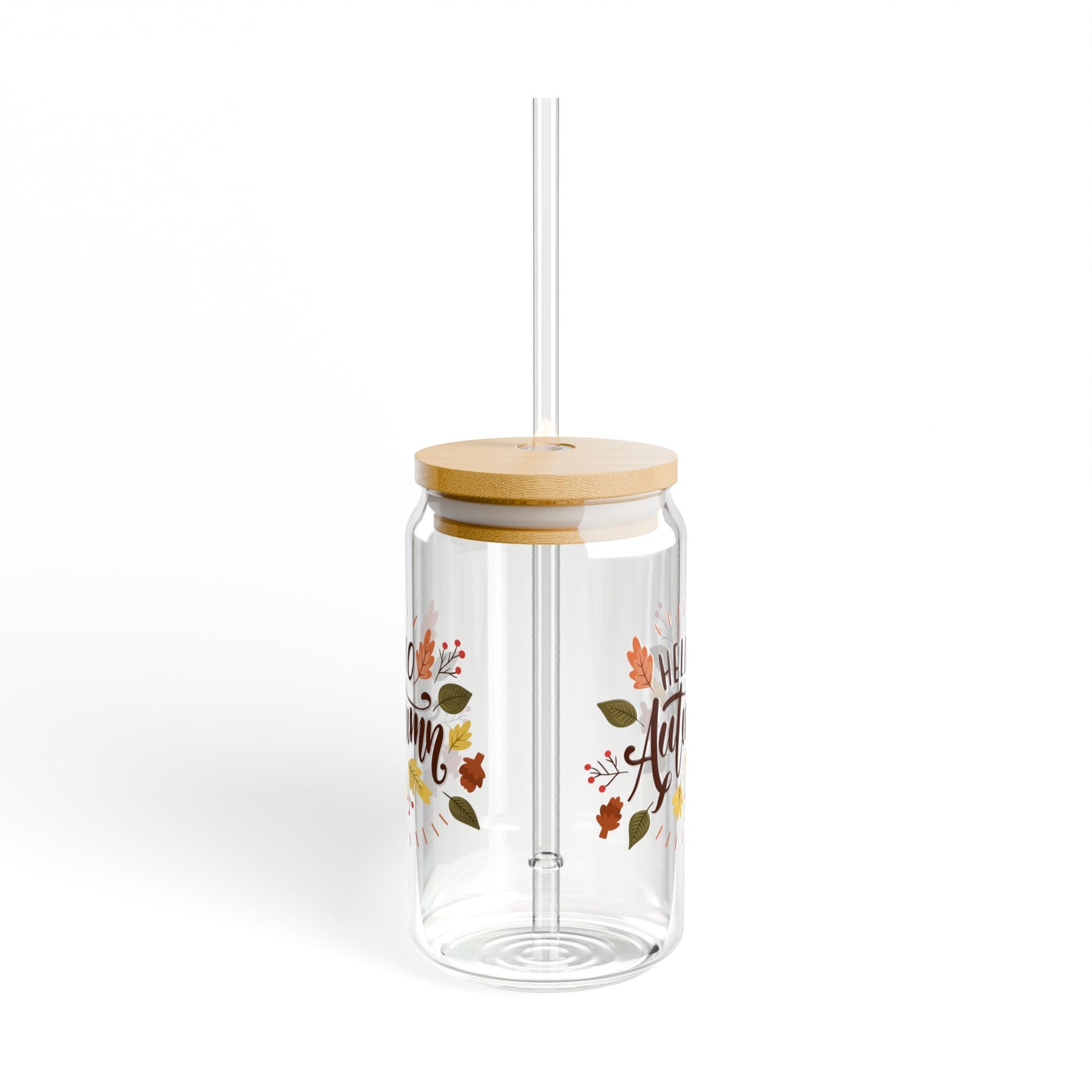 Hello Autumn glass Daily coffee glass survivor's club mug sipper glass floral glass gift for her for teacher for mom bestie Sipper Glass