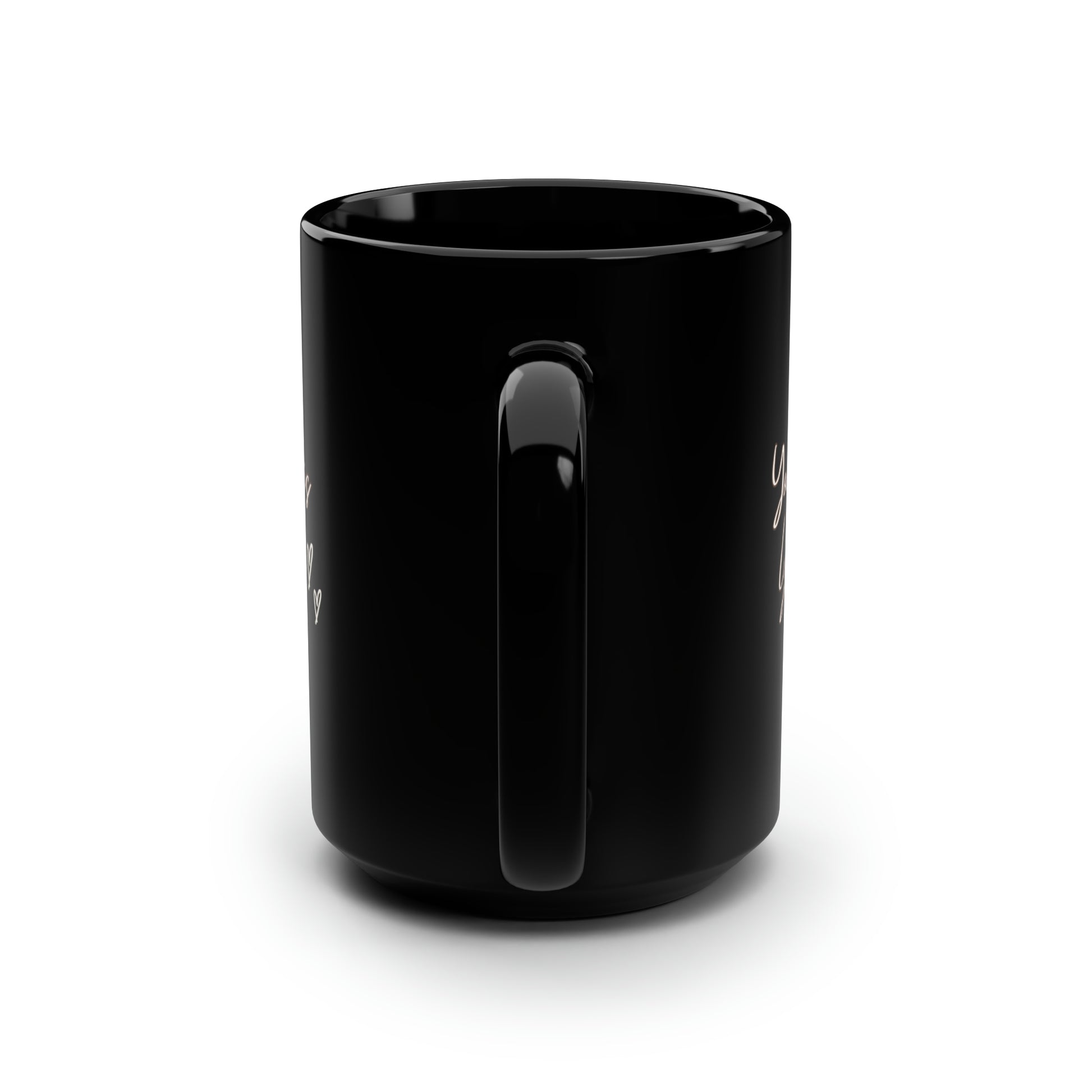 These black mugs come in one size – 15oz (0.44l) – plenty for morning caffeine boosts and hot cups of tea on a rainy day. They're easy to grip and feel sturdy thanks to the C-shaped handle. Add more personality by decorating them with your original designs. They'll be printed on the black ceramic material in picture-perfect quality with a glossy finish.