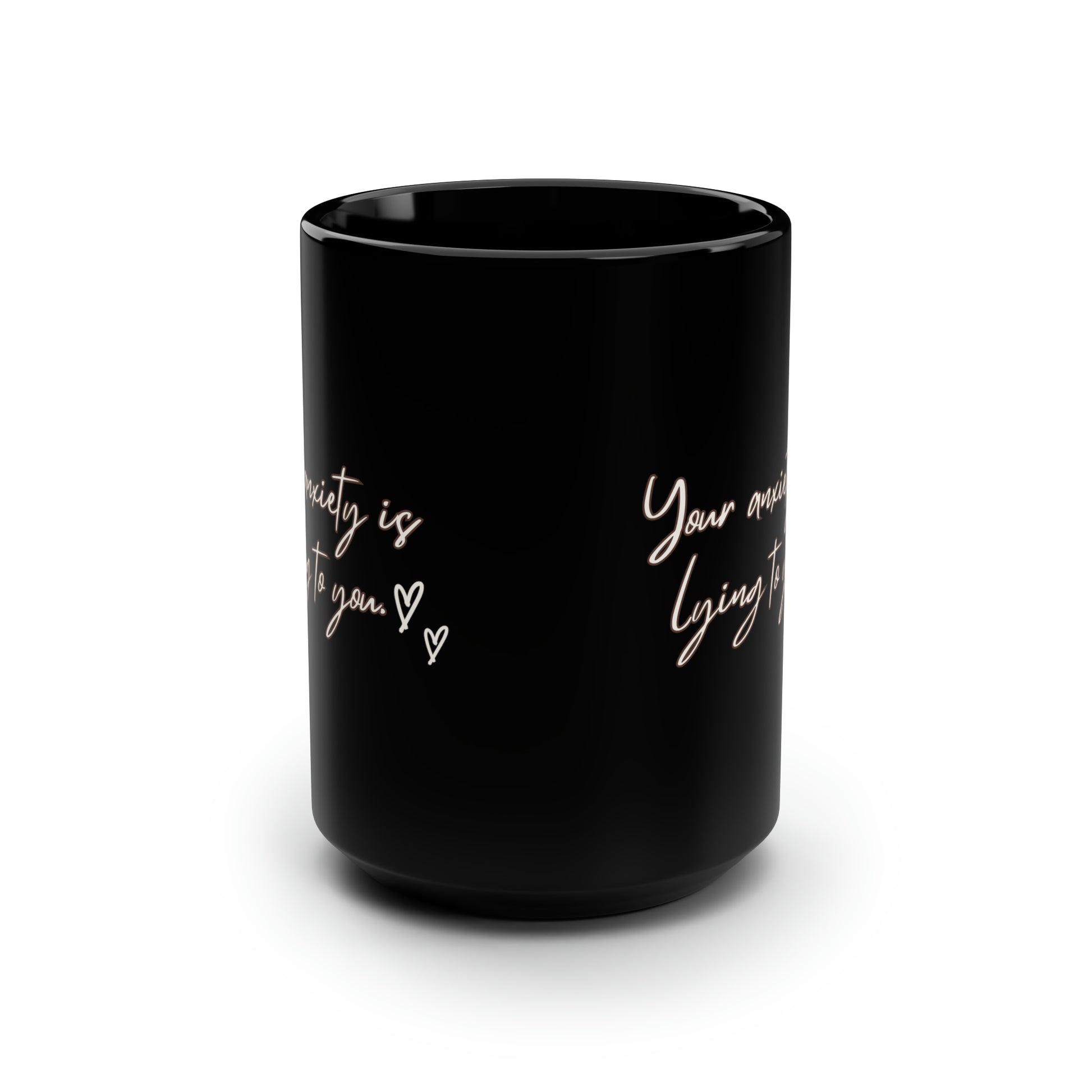 Your anxiety is lying to you mug Mental health matters sign mug Black ceramic Mug 15oz funny gift office Christmas